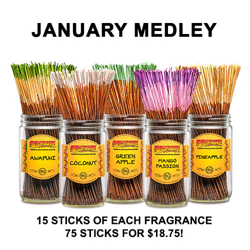 15 sticks each of these 5 fragrances in one bundle for $18.75. Awapuhi, Coconut, Green Apple, Mango Passion™, and Pineapple. All fragrances separated into individual labeled bags. Or MAX it to get 100 sticks of each fragrance. That's 500 sticks for only $124! Limited time offer!