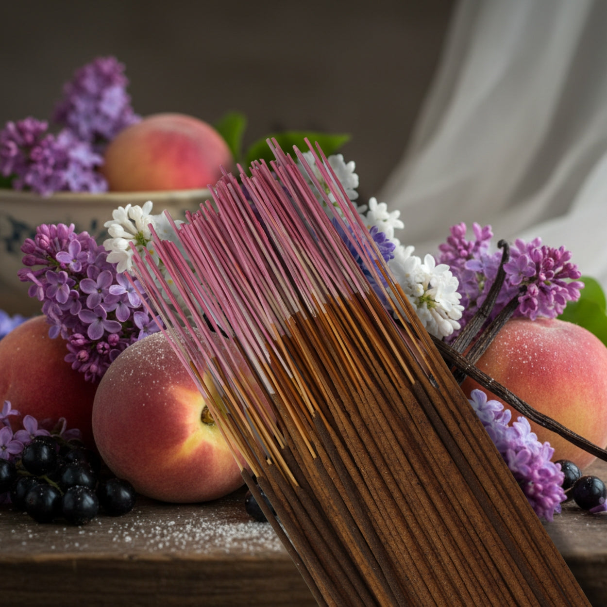 Peace of Mind™ incense sticks. A serene floral blend with notes of juicy peach, black currant, lilac, spicy hyacinth and warm vanilla bean.